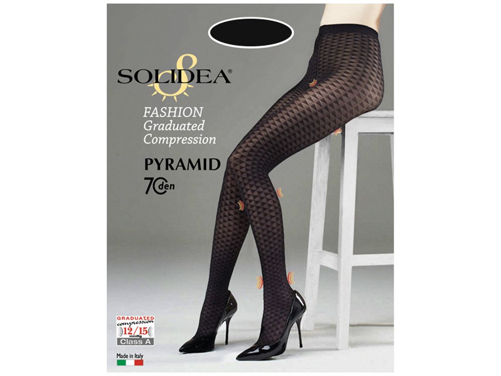 70 den punčochové kalhoty s elegantním a svůdným designem. Odstupňovaná komprese 12/15 mmHg zajišťuje účinný preventivní účinek proti žilní nedostatečnosti pro dynamické a pohodlné nohy. Nový neodolatelný návrh společnosti Solidea k přizpůsobení vašeho stylu s originálním nádechem, který sleduje módní trendy, aniž by zanedbával zdraví a pohodu nohou.